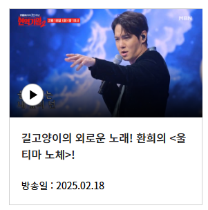 - 방송 일시 : 2월 25일 밤 9시 50분 ~ (200분 생방송)