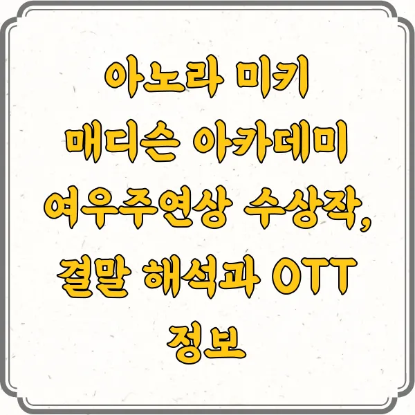 2024년 영화계 최대 이변! 혜성처럼 등장한 미키 매디슨, 아카데미 여우주연상 수상! 그녀의 파격적인 연기 변신으로 화제를 모은 영화 <아노라> ! 뉴욕 스트리퍼와 러시아 재벌 2세의 격정 로맨스, 그러나 반전 가득한 결말은?! 지금 바로 <아노라>의 흥미진진한 줄거리와 날카로운 결말 해석, 그리고 OTT 플랫폼 정보까지 확인해보세요!