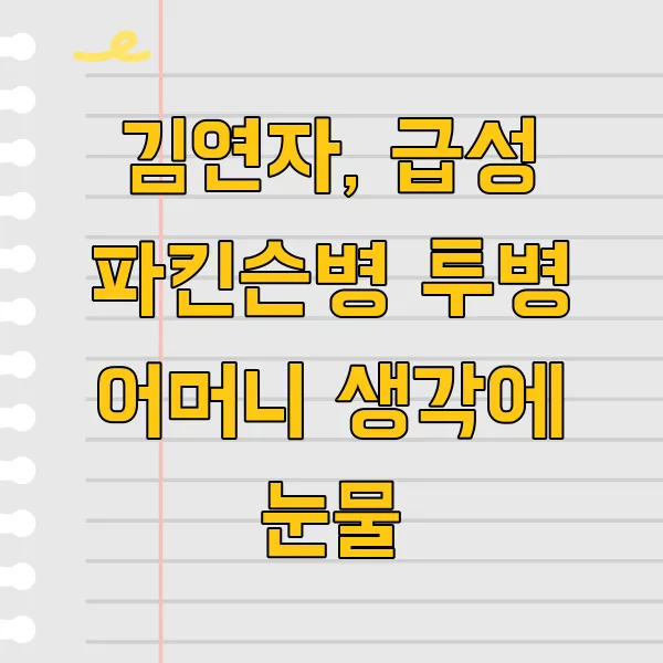 가수 김연자 씨가 어머니의 급성 파킨슨병 투병 소식을 전하며 눈물을 보였습니다. '아모르 파티'로 제2의 전성기를 맞이한 그녀에게 닥친 시련에 팬들의 위로가 이어지고 있습니다. 김연자의 효심, 파킨슨병의 어려움, 그리고 고령화 사회의 돌봄 문제까지, 이번 사건을 통해 우리 사회가 생각해 봐야 할 것들을 짚어봅니다. 어머니의 투병, 김연자에게는 얼마나 큰 슬픔일까요?
