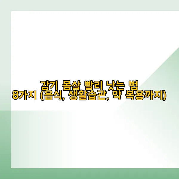 감기 몸살은 흔한 질환이지만, 제대로 관리하지 않으면 심각한 합병증으로 이어질 수 있습니다. 위에서 제시된 8가지 방법을 실천하여 감기 몸살을 빠르게 극복하고 건강한 일상을 되찾으세요! 꾸준한 건강 관리와 예방으로 감기 없는 건강한 삶을 누리시길 바랍니다!